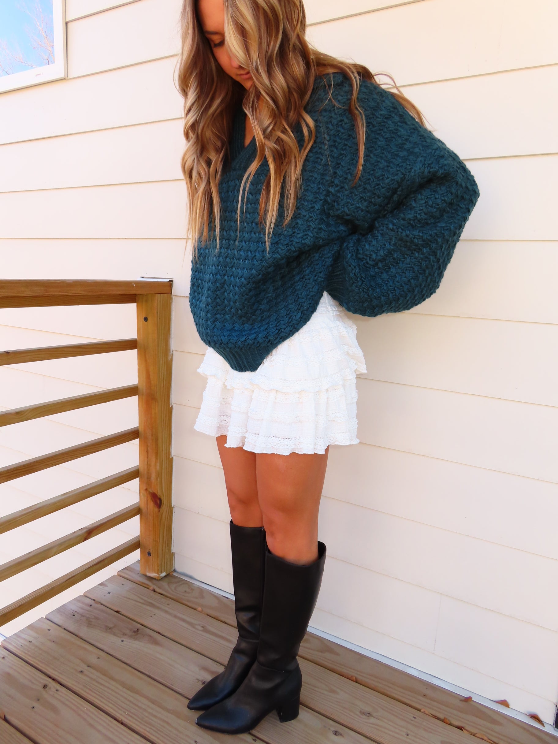 This white skirt features delicate ruffle details and a double-lined design for a polished, comfortable fit. Feminine and versatile, it’s perfect for any occasion. Pair it with a tucked-in blouse or sweater for a chic daytime look, or dress it up with heels and accessories for a night out.